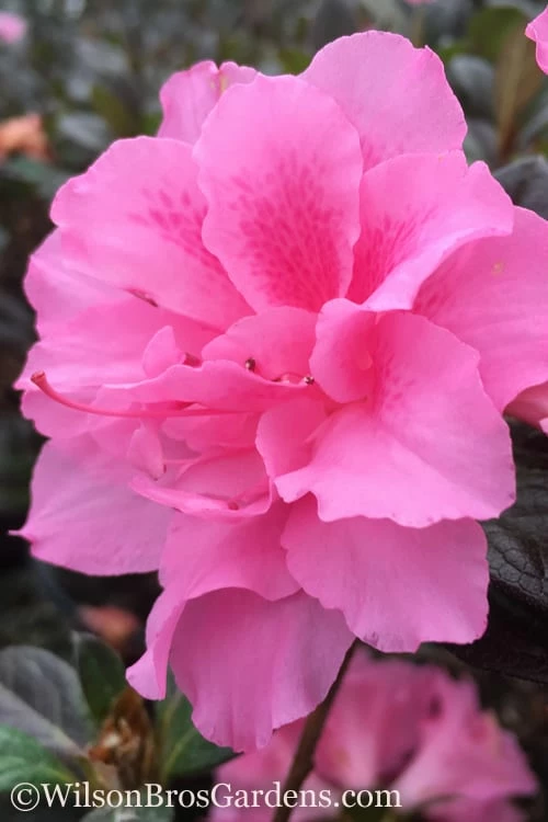 Autumn Carnation Encore Azalea produces an abundance of large, gorgeous vibrant pink double blooms in spring, summer, and fall that nearly cover the lustrous, dark green foliage. The ruffled flowers are very similar in appearance to the old ‘Pink Ruffle’ azalea. University trials have shown Autumn Carnation to be one of the most cold tolerant Encore Azalea varieties in the series. Butterflies love the flowers, and blooming branches are nice for cutting to create stunning indoor floral arrangements.