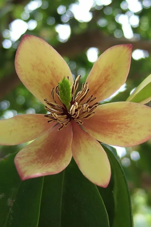 Featuring flowers that smell just like a banana popsicle, the Banana Shrub, also known as the Port Wine Magnolia, is an an attractive evergreen large shrub or small tree that’s been around the United States since the late 1700’s. The 1-inch magnolia-like flowers are produced in abundance in late spring and sometimes sporadically during summer in warmer climates. The oblong, glossy, evergreen, green leaves are attractive year round. Originally from China, this magnificent plant is one of the classic evergreens of the Old South.