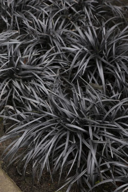 Growing 8 to 10 inches tall and 18 inches or more wide, Black Mondo Grass is ideal for use as an accent, grouping or border edger in home foundation plantings and landscape borders. Perfect for use as an underplanting for small trees such as Japanese maples or a groundcover under large shade trees. Also serves nicely as a solo or grassy accent in combination container gardens. A fine addition to black color theme gardens, Asian gardens, rock gardens, and nestled between boulders around the garden pond.