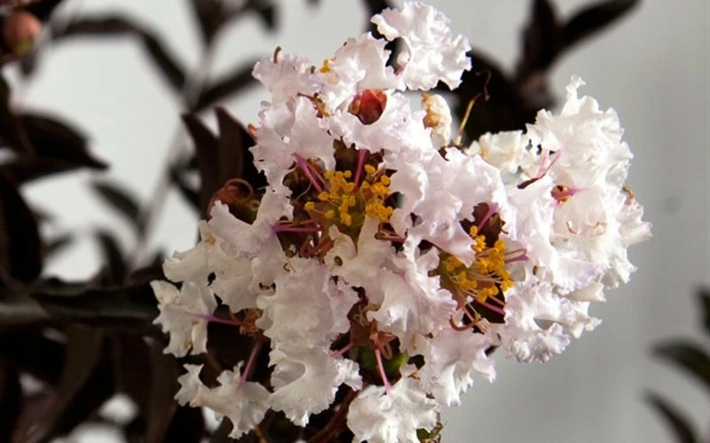 Delta Moonlight Crape Myrtle is an exciting new hybrid with deep maroon leaves that hold their color all season long. During summer an abundance of bright white flowers come that contrast beautifully with the dark foliage. Delta Moonlight is a mid-size crape myrtle with a fast rate of growth to 8 to 12 feet in height and 4 to 6 feet wide – the perfect size flowering tree for smaller garden spaces.