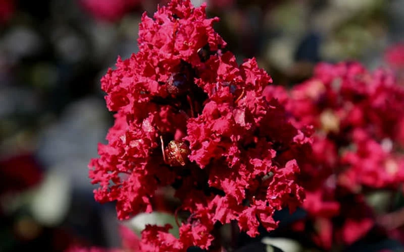 Growing to 6-8 feet tall and wide, the Double Feature Red Crape Myrtle is ideal for use as a specimen, in groupings, or as a colorful hedge in sunny landscape borders. It can be grown as a shrub or lower branches can be removed to form a very attractive small tree, making it an excellent choice for use as a specimen or accent in sunny home foundation plantings or large pots. This is one plant that is sure to stand out in your landscape!