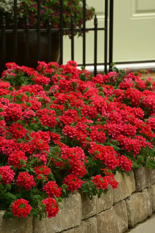 EnduraScape Red Verbena isn’t as aggressive as Homestead so it fits well in smaller spaces flowering prolifically on trailing stems that form a dense, ground-hugging carpet maybe 6 inches above the ground. Also an excellent spiller plant for container gardens and hanging baskets. Both butterflies and hummingbirds will thank you for planting this one in your gardens!